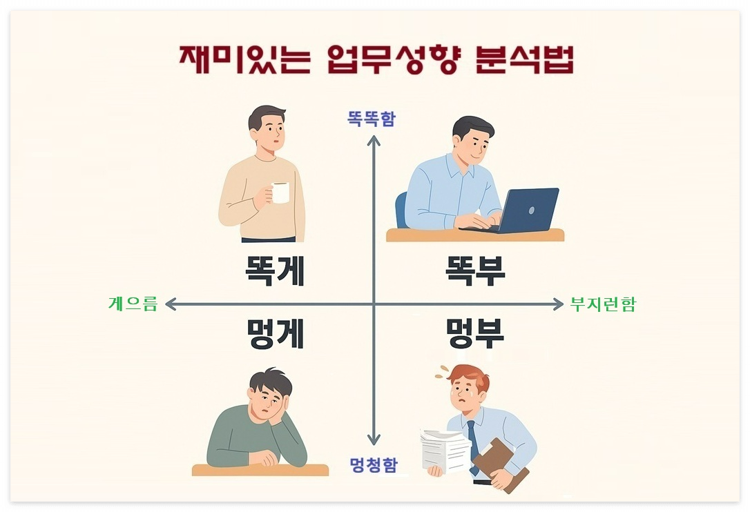 재미있는 업무성향 분석법 - 당신은 똑부? 똑게? 멍부? 멍게?